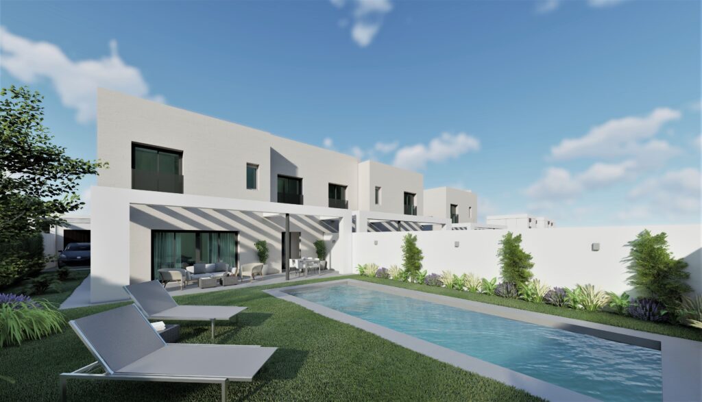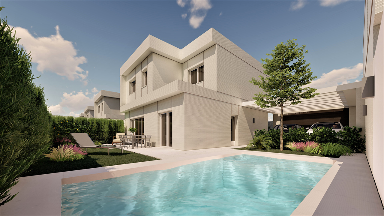 Descubre en Almagro 20 exclusivos chalets adosados de 4 dormitorios, amplio jardín, dos plazas de aparcamiento. Arquitectura estudiada, con estancias amplias y distribuidas de forma eficiente.